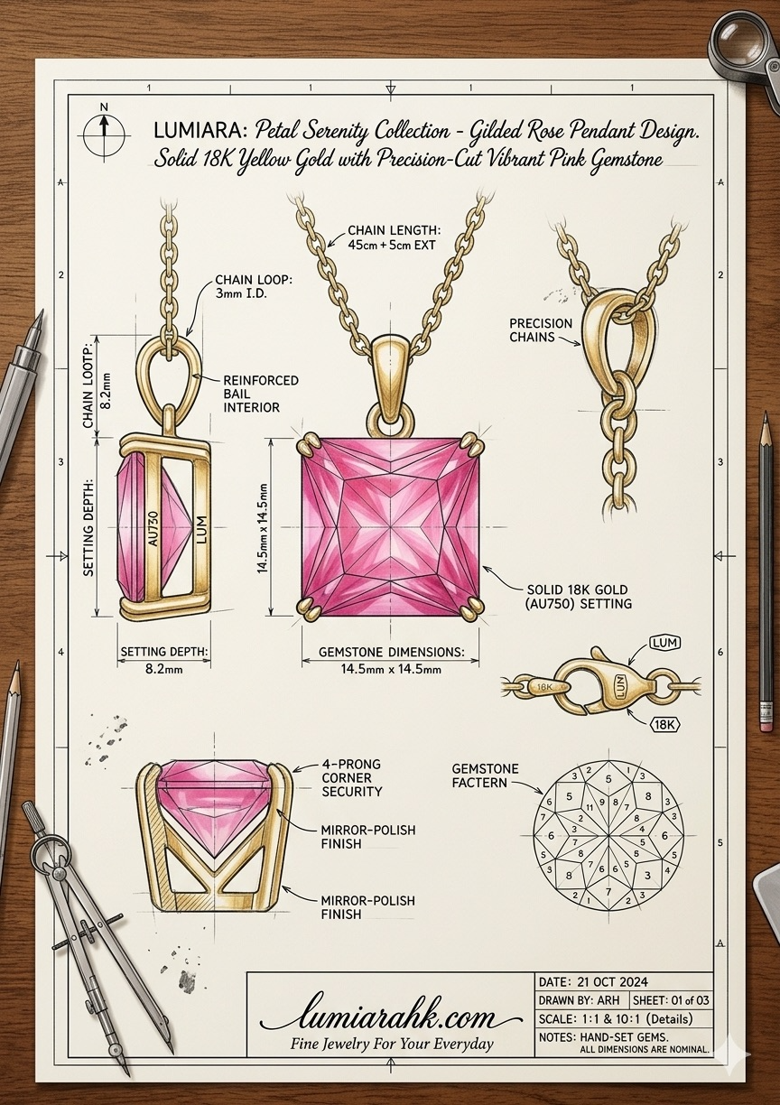 Indulge in the everlasting glow of the Lumiara 18K Solid Gold Necklace. Featuring a meticulously selected princess-cut pink gemstone, this piece combines the romantic hues of a blooming rose with the prestigious strength of AU750 gold. It’s not just jewelry; it’s an investment in your radiance.