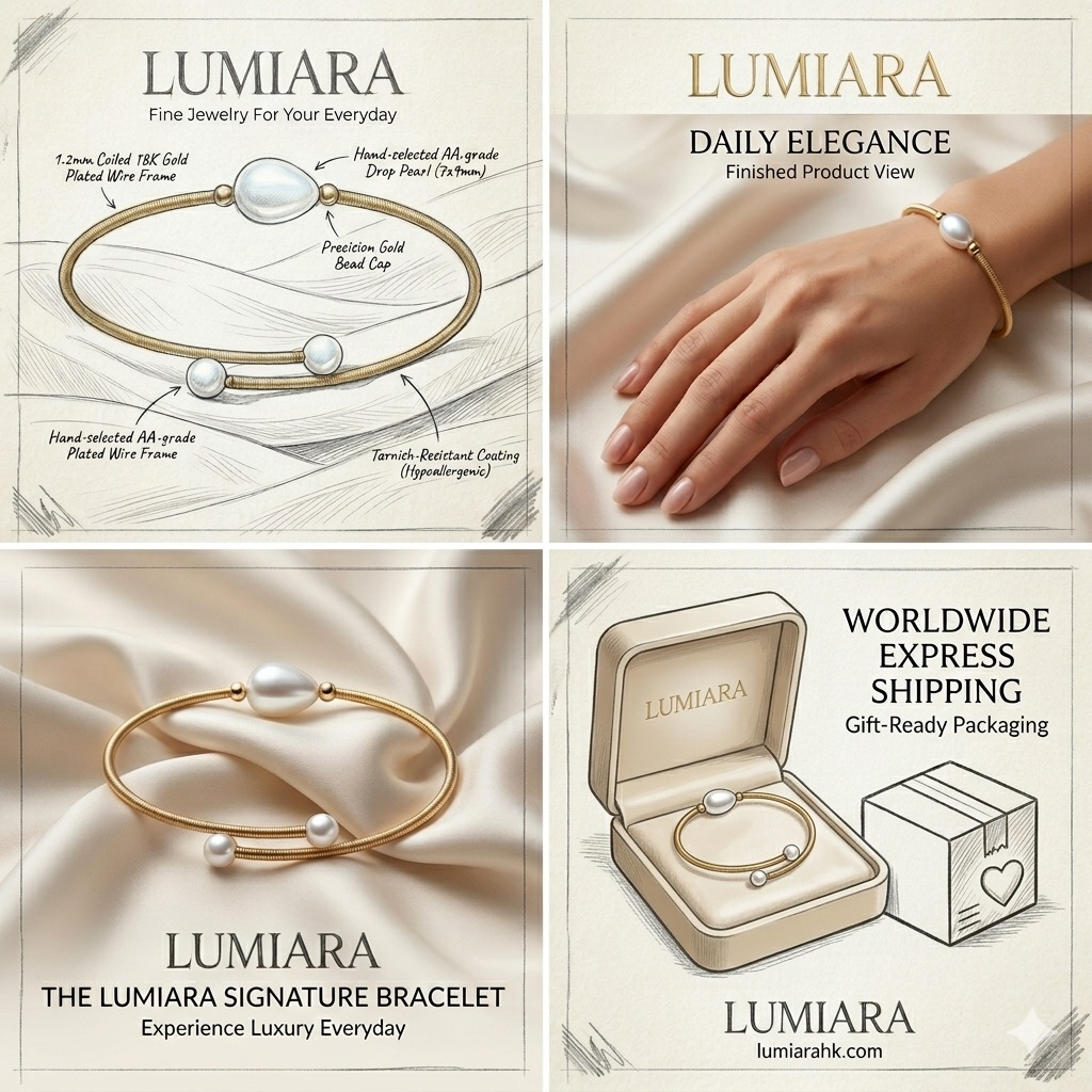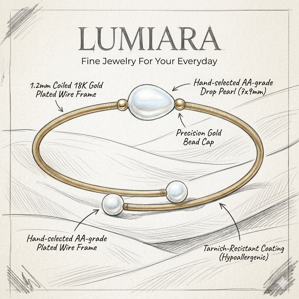 Embrace the perfect blend of organic beauty and modern craftsmanship. The Lumiara Signature Drop Pearl Bangle features a unique coiled-wire design that wraps elegantly around your wrist, accented by hand-selected, high-luster pearls. It’s a piece designed to be as versatile and dynamic as the woman who wears it.